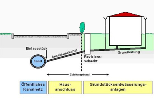 Die Grundstückseigentümer sind Eigentümer der Grundstücksentwässerungsanlagen auf dem Grundstück und des Anschlusskanals im öffentlichen Gelände bis zum öffentlichen Kanal.